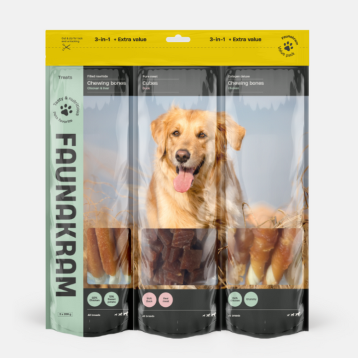 Geef je hond een fantastische smaaksensatie met Faunakram 3-in-1 Mega Snackpakket! Dit valuepack bevat drie verschillende soorten heerlijke snacks, die je hond zowel vermaken als een perfecte beloning geven tijdens de training. Je...
