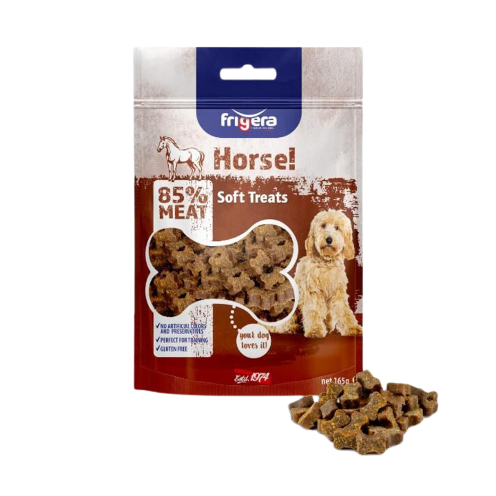 Here is the translation from Danish to Dutch, keeping the HTML intact: Wanneer je hond het beste verdient, is Frigera Semi-Moist Soft Hest de perfecte keuze. š¾ Deze heerlijke, zachte snacks met paardenvlees...